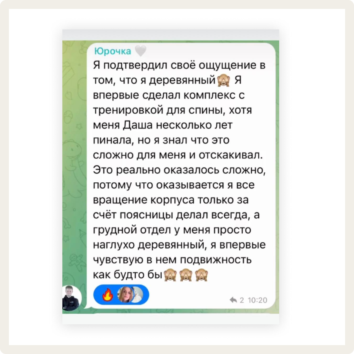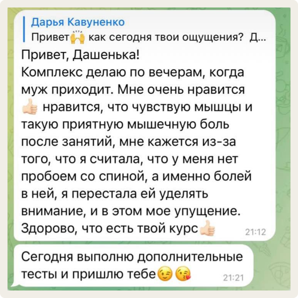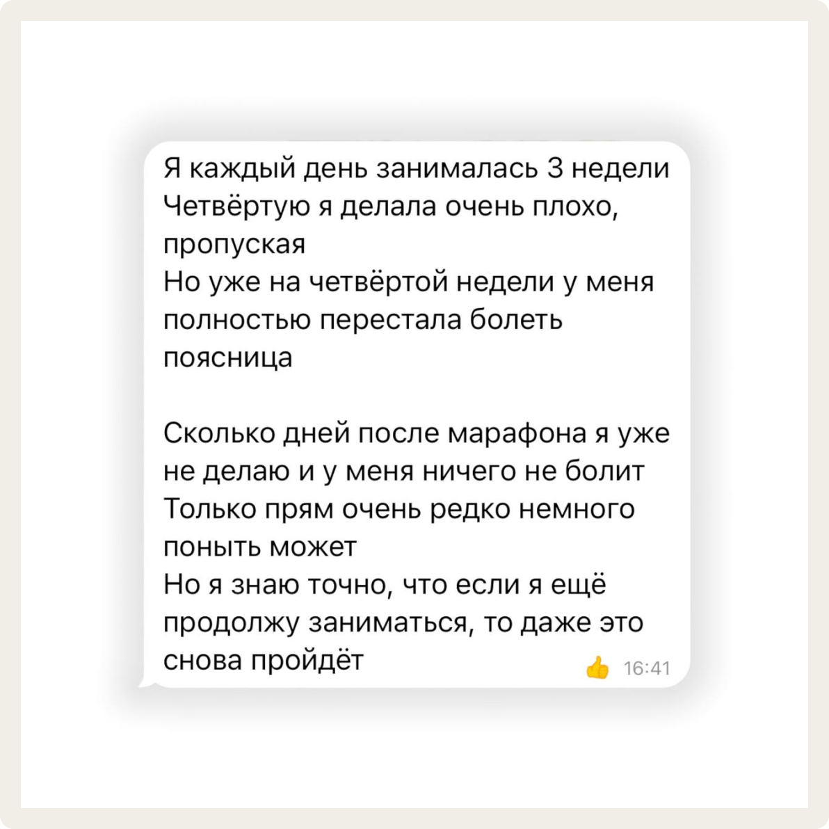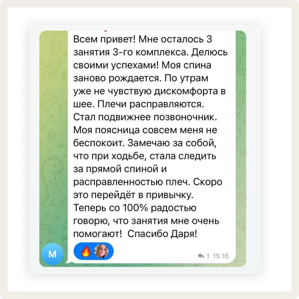 Результат: Облегчение застарелых болей, снятие усталости со спины, поясницы и шеи, улучшение самочувствия, появляются силы, желание и энергия для дальнейших занятий